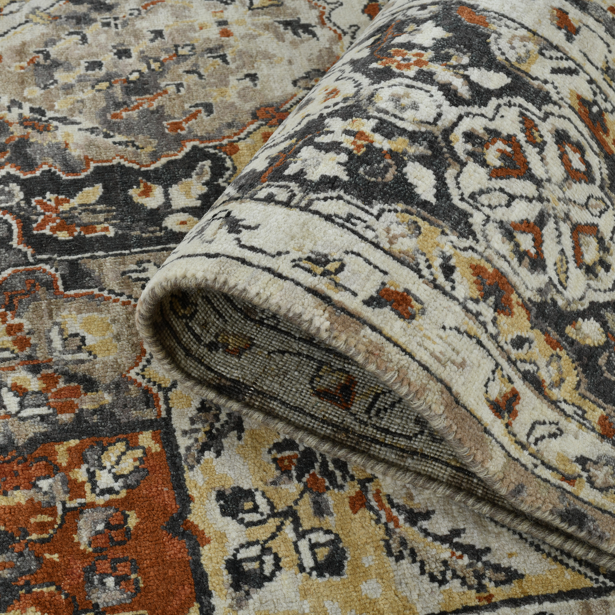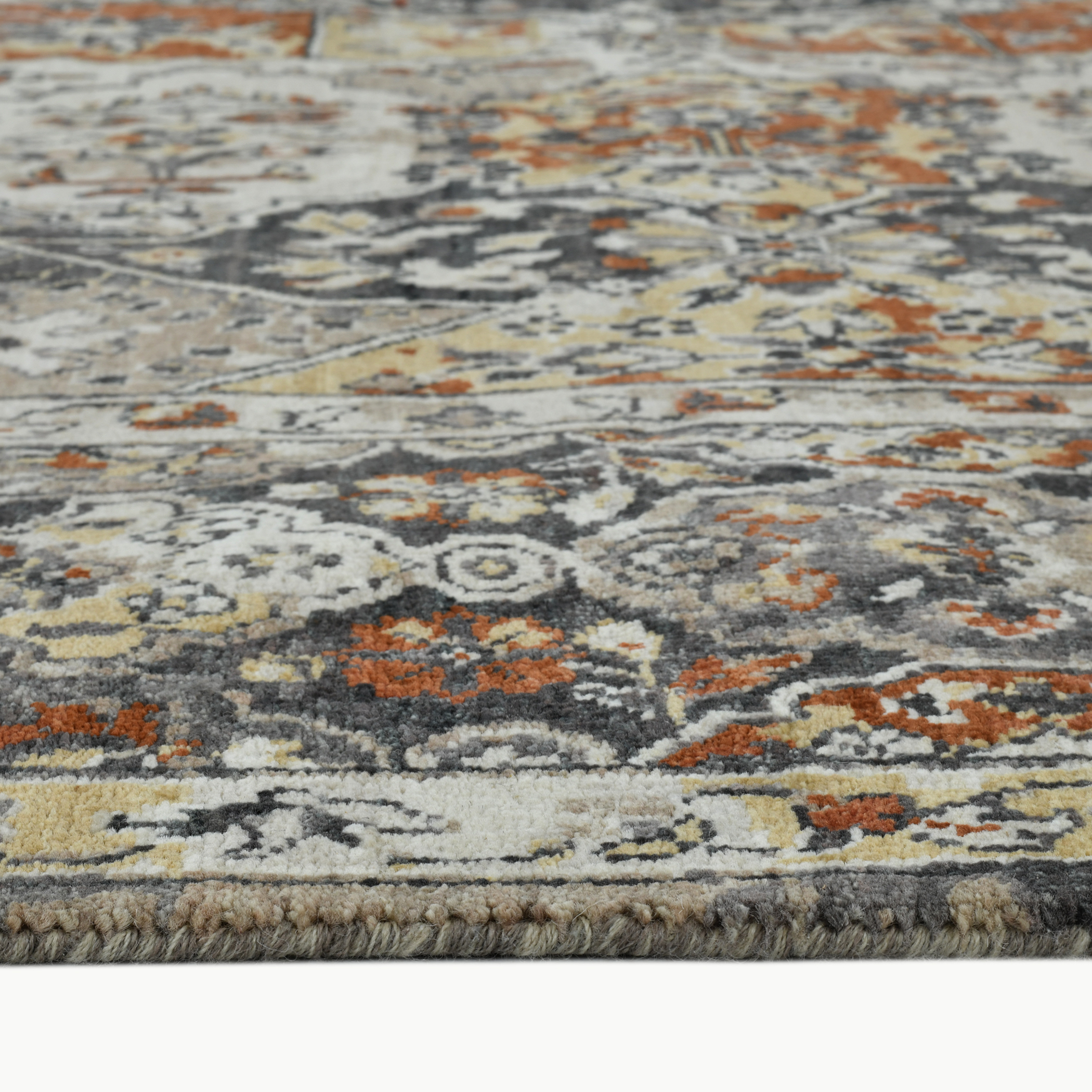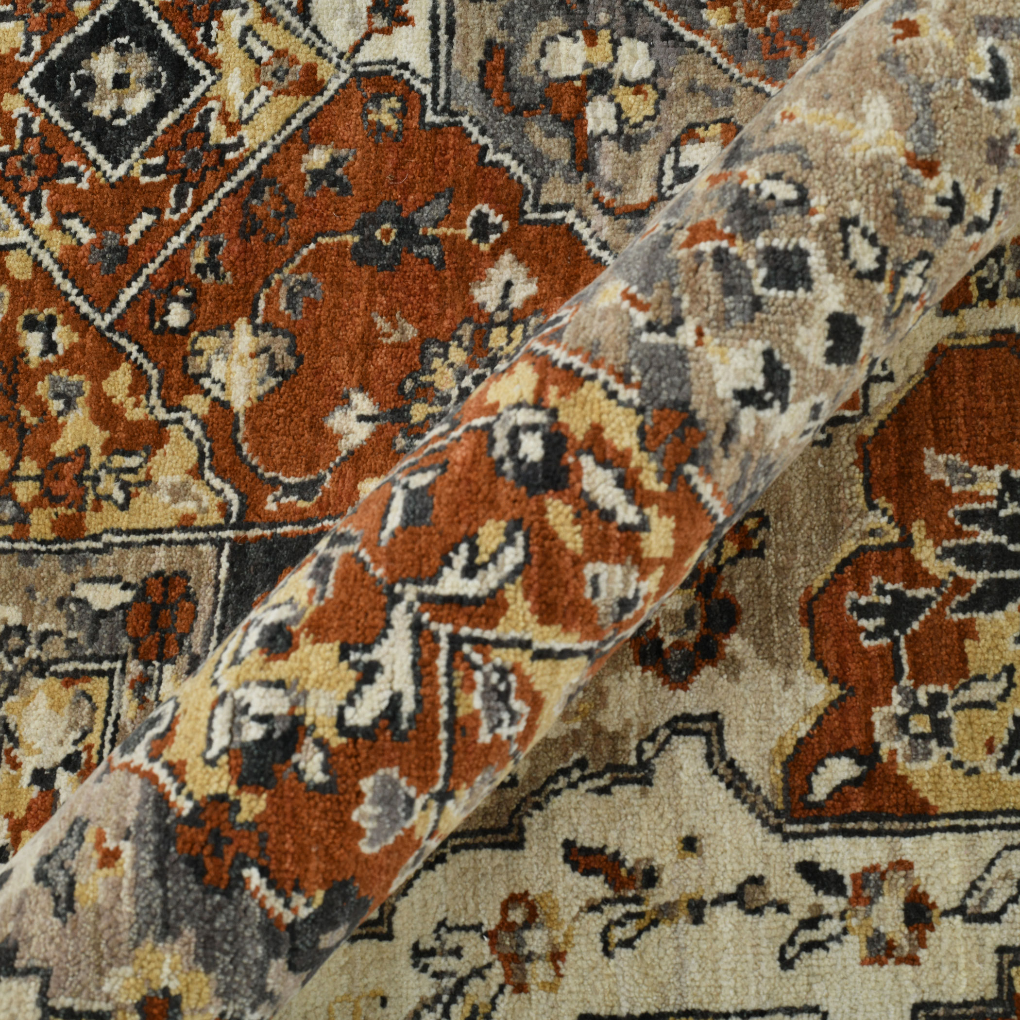 A modern heirloom, the Heritage collection is among Saraswatii premier rug collections. Raw New Zealand wool is completely processed by hand to create the yarn that contributes to the Heritage collection natural abrash appearance, being both an antique and new simultaneously. Artisans intentionally weave unmatched quality into each design, bursting with timeless colors and designs. The Heritage collection will endure as long as the designs that grace the many faces of this fine array of floor coverings.