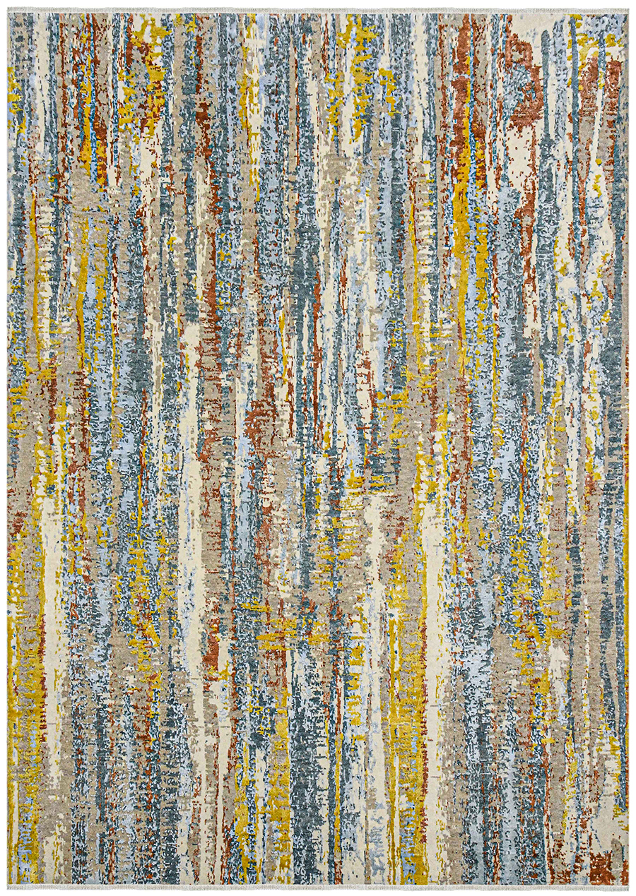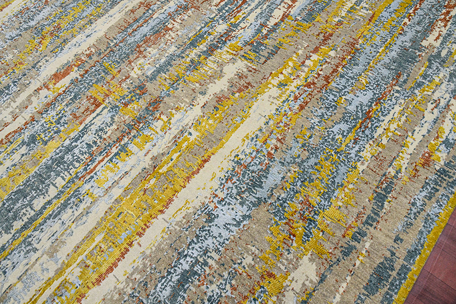 The new hand-knotted Vogue collection, a blend of viscose and wool is distinguished by a silken finish and soft luster with a bright contrasting color palette that plays with light for a luxe look.